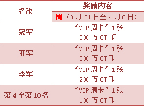[公告] 3月31日至4月6日“超级联赛”周奖