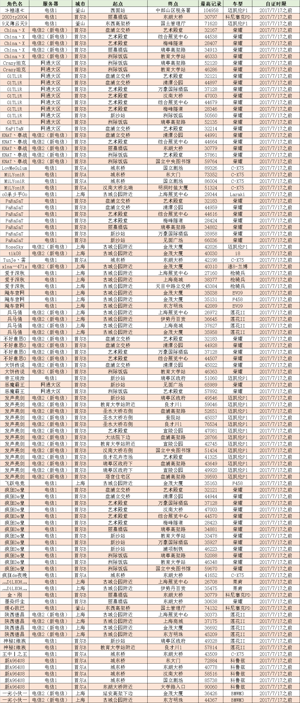 本次除本贴公示外,GM还将以线上邮件形式通知下图所有角色。请大家公平,公正挑战路线记录,不要去尝试穿墙,卡秒等异常手段进行挑战。