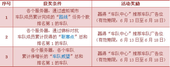 单个服务器中单支车队,最多可对应1项获奖条件;