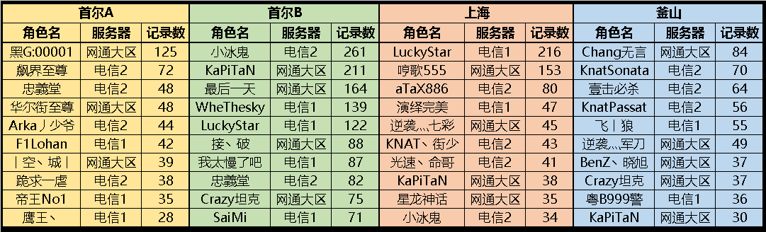 我们对4月城市路线任务,最快记录进行了全服排序,甄选出了TOP10.