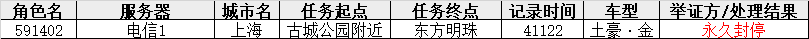 首次解出黑名单,除3000点充值并扣除外,新增惩罚:删除卡秒所使用的车及其所装备的所有装备【VIP误操作恢复对此行为中被删除车、装备无法恢复】;   对举报者(在被举报者成功自证时)亦对等处罚;