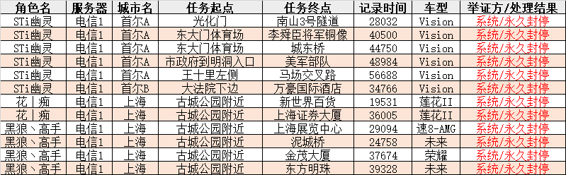即日起,一个会员角色(同会员下多个角色,不受理分别举报不同的角色),一个周期内,只受理1条举报信息。不再受理一个会员角色举报多个不同的角色路线记录; 一个周期内,一个角色举报同一角色多条路线,只受理一条异常路线记录。
