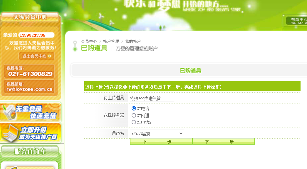 我想回归飚车世界 但我以前玩过的角色在CT飚车电信1,角色名:aKanG黑狼                    最近想回登录游戏选择电信1进游戏 根本不显示角色 让我创建新角色。我在会员中心上传道具时选择RW电信一明明出现我这个角色名:aKanG黑狼       [email=]https://s1.ax1x.com/2022/10/28/x41336.png[/email]  [email=]https://s1.ax1x.com/2022/10/28/x41Q41.png[/email]   [email=]https://s1.ax1x.com/2022/10/28/x4119x.png[/email]