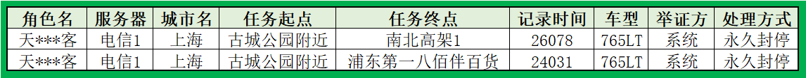 2017年8月起稽查将交由系统玩家实名举报试行俩部分分别出击,请上图中大神们于指定时间之前回贴出示视频演示,指定车型,指定城市(赛道),起点至终点间的路线记录,录制成为视频发布至视频网站,腾讯等,将视频链接以回贴的形式进行自证成功自证(视频中呈现正常走线,成绩与产生成绩无限接近判定为成功)可免于进入黑名单的处罚并获得1000万CT/路线奖励; 若未能自证成功,或不自证将下次版本更新时清空此角色所有路线记录,并将通行证加入黑名单