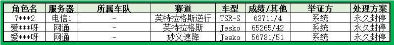 首次解出黑名单,除3000点充值并扣除外,新增惩罚:删除卡秒所使用的车及其所装备的所有装备【VIP误操作恢复对此行为中被删除车、装备无法恢复】;