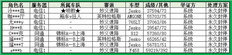 2017年8月起稽查将交由系统、及玩家实名举报试行俩部分分别出击,请上图中大神们于指定时间之前回贴出示视频演示,指定车型,指定城市(赛道),起点至终点间的路线记录,录制成为视频发布至视频网站,腾讯等,将视频链接以回贴的形式进行自证。成功自证(视频中呈现正常走线,成绩与产生成绩无限接近判定为成功)可免于进入黑名单的处罚并获得1000万CT/路线奖励;