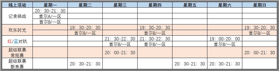 线上活动排布介绍,以线上实际开启活动为准,本贴只作参考,临时加开,系统补偿不在此贴显示范畴!