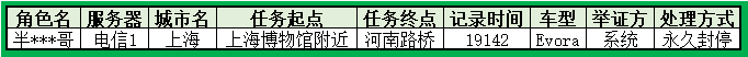 2017年8月起稽查将交由系统玩家实名举报试行俩部分分别出击,请上图中大神们于指定时间之前回贴出示视频演示,指定车型,指定城市(赛道),起点至终点间的路线记录,录制成为视频发布至视频网站,腾讯等,将视频链接以回贴的形式进行自证成功自证(视频中呈现正常走线,成绩与产生成绩无限接近判定为成功)可免于进入黑名单的处罚并获得1000万CT/路线奖励; 若未能自证成功,或不自证将下次版本更新时清空此角色所有路线记录,并将通行证加入黑名单