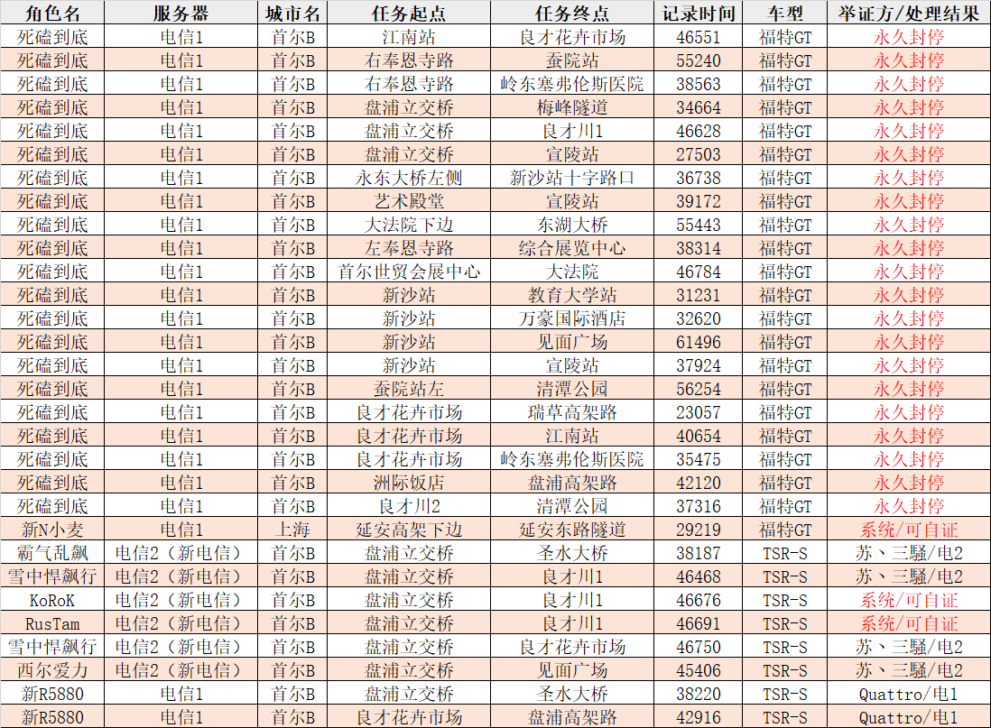 关于新秀赛实名举报:提供新秀赛的时间段,对方的角色名和比赛车型,比赛成绩,结算时候的成绩记录截图
