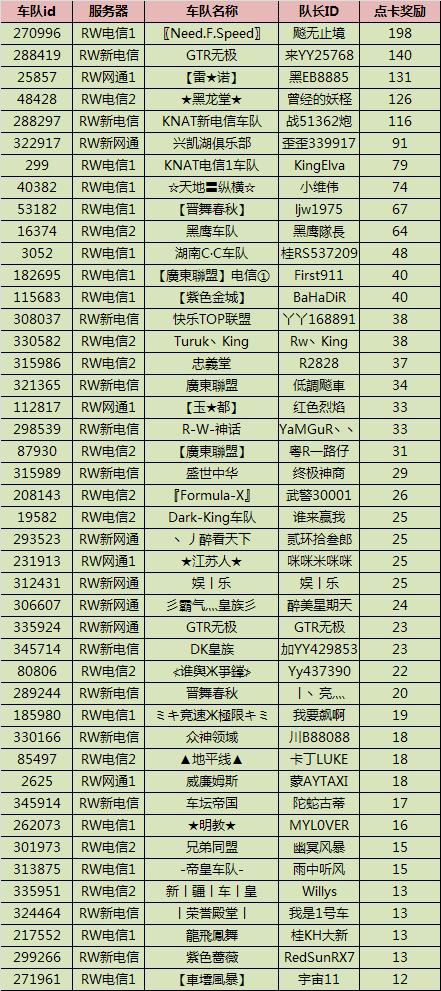 1. 点卡奖励还是按照相关规则:由车队队长负责分配;