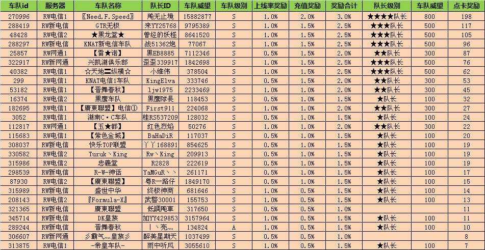 您的车队是否已经在这份激动人心的榜单中登场了呢?下月,这份喜悦是否同样属于您呢?希望大家能够更好的组织好车队的活动,获得我们更多的奖励!