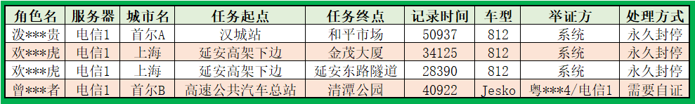 2017年8月起稽查将交由系统玩家实名举报试行俩部分分别出击,请上图中大神们于指定时间之前回贴出示视频演示,指定车型,指定城市(赛道),起点至终点间的路线记录,录制成为视频发布至视频网站,腾讯等,将视频链接以回贴的形式进行自证成功自证(视频中呈现正常走线,成绩与产生成绩无限接近判定为成功)可免于进入黑名单的处罚并获得1000万CT/路线奖励; 若未能自证成功,或不自证将下次版本更新时清空此角色所有路线记录,并将通行证加入黑名单