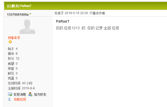 难怪你前面的ID名字叫“不好意思”,别以为换了个ID就不知道是你们了。电一的卡秒车队谁不知道? 在电一被举报跑电二来跑,是不是过几天又要祸害网通?