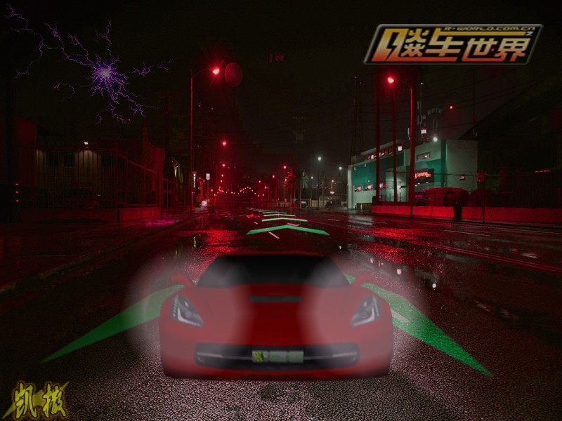 1.在《飚车世界》游戏中截图:“现代”车+游戏美景.