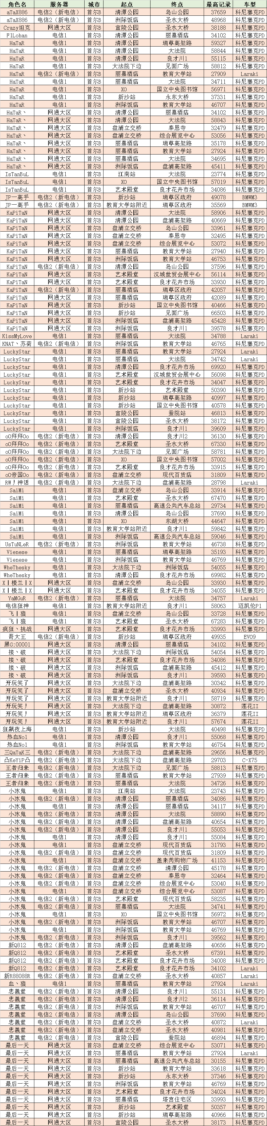本次除本贴公示外,GM还将以线上邮件形式通知下图所有角色。请大家公平,公正挑战路线记录,不要去尝试穿墙,卡秒等异常手段进行挑战