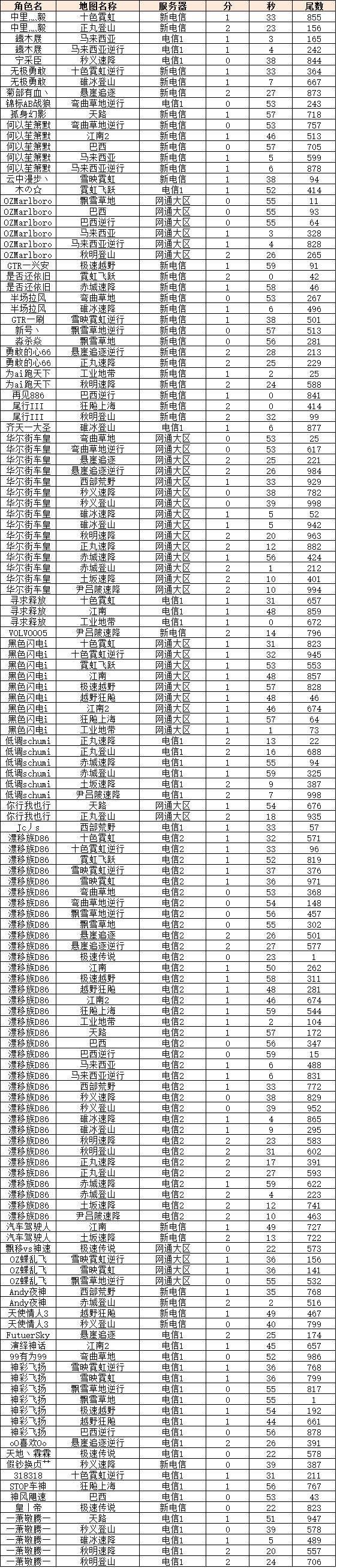 飚车世界,谢谢有你!——XXX(服务器)、XXX(角色名)